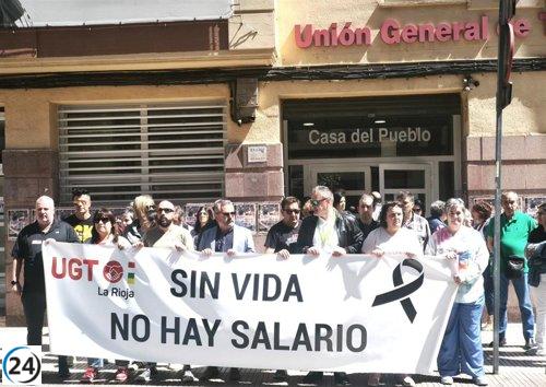 UGT FICA se manifiesta en honor al último trabajador riojano víctima de un accidente laboral, exigiendo mejoras en la seguridad.